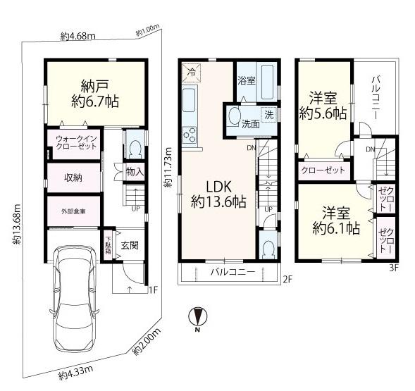 ■駐車スペースの奥には収納力のある外部倉庫あり。